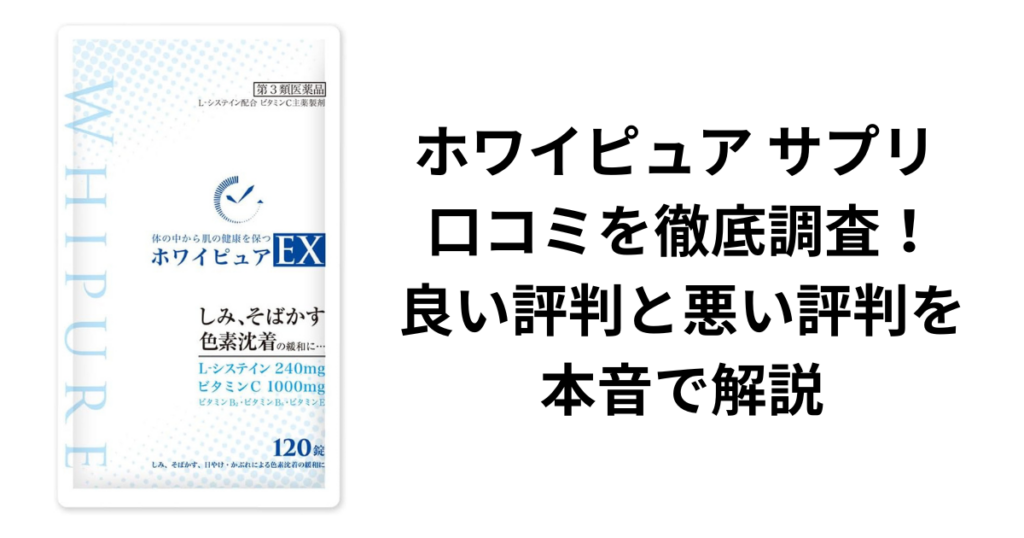 この記事では、ホワイピュア サプリ 口コミを徹底調査し、良い評判と悪い評判の両方を本音で解説します。 結論から言うと、ホワイピュアは「シミが目立ちにくくなった」「肌全体が明るく見えるようになった」「医薬品だから安心して続けられる」といった良... -